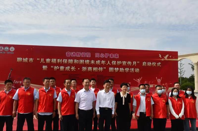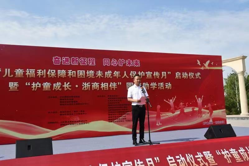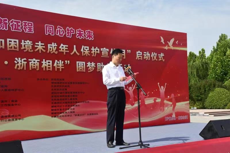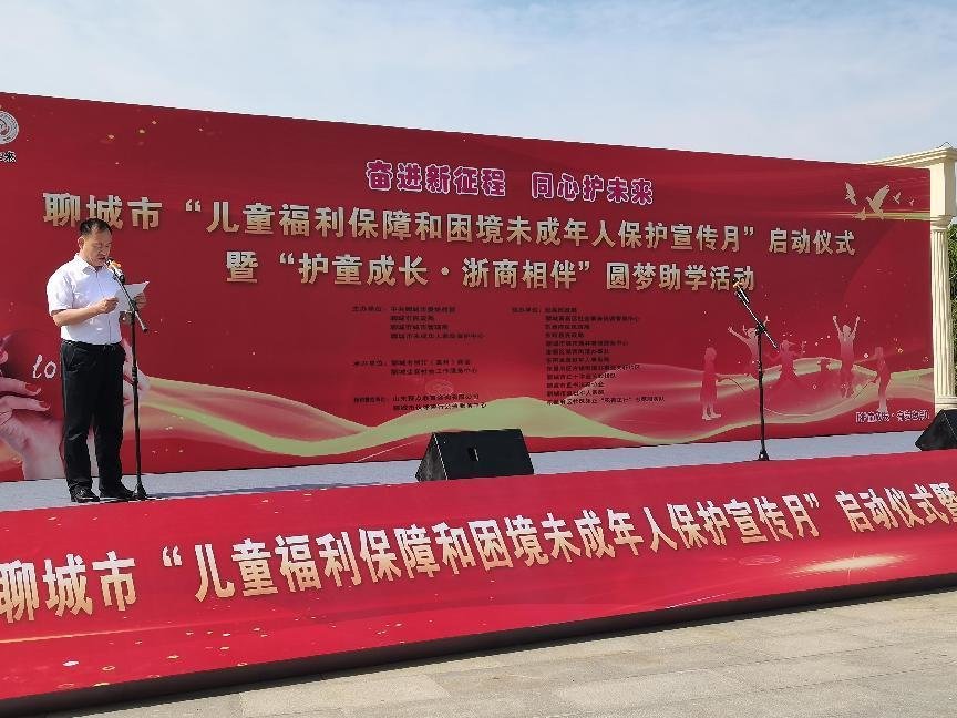 启动仪式上,聊城市民政局党组书记、局长景志国发表讲话。聊城市浙江(温州)商会会长介绍了“护童成长•浙商相伴”圆梦助学活动,并为聊城市困境(留守)儿童及其他未成年人发放了圆梦助学金。