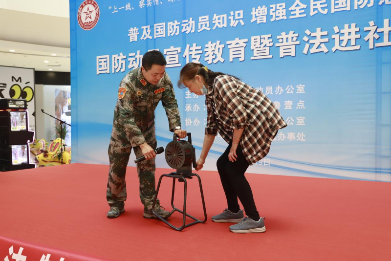 除了现场教授实操技能,济南市国防动员办公室法律顾问董凯明为居民们普及了《中华人民共和国军事设施保护法》的相关法律内容,并提醒大家如果发现破坏军事设施的行为要及时拨打国家安全机关举报受理电话——12339。此外,通过播放通俗易懂的国防动员知识科普动画片,帮助大家了解了身边的国防动员设施设备及使用保护方法。