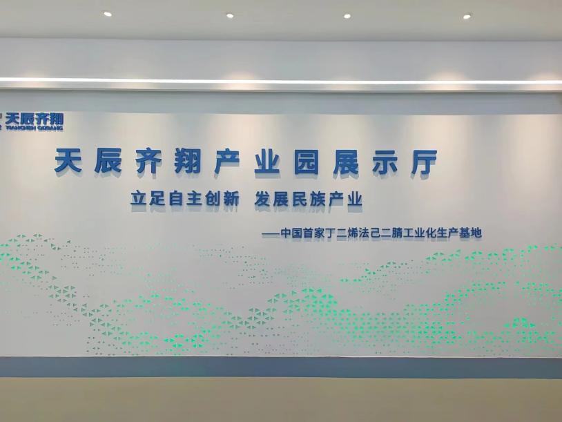 来到天辰齐翔产业园展示厅,“立足自主创新,发展民族产业”标语异常醒目,人工智能解说员向大家“展示着”我国首家丁二烯法己二腈工业化生产基地的澎湃动能。