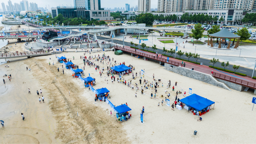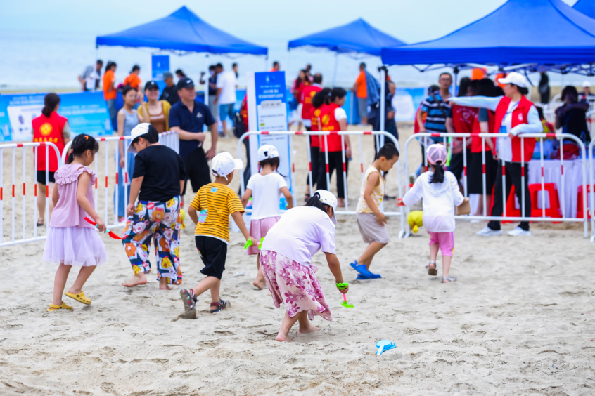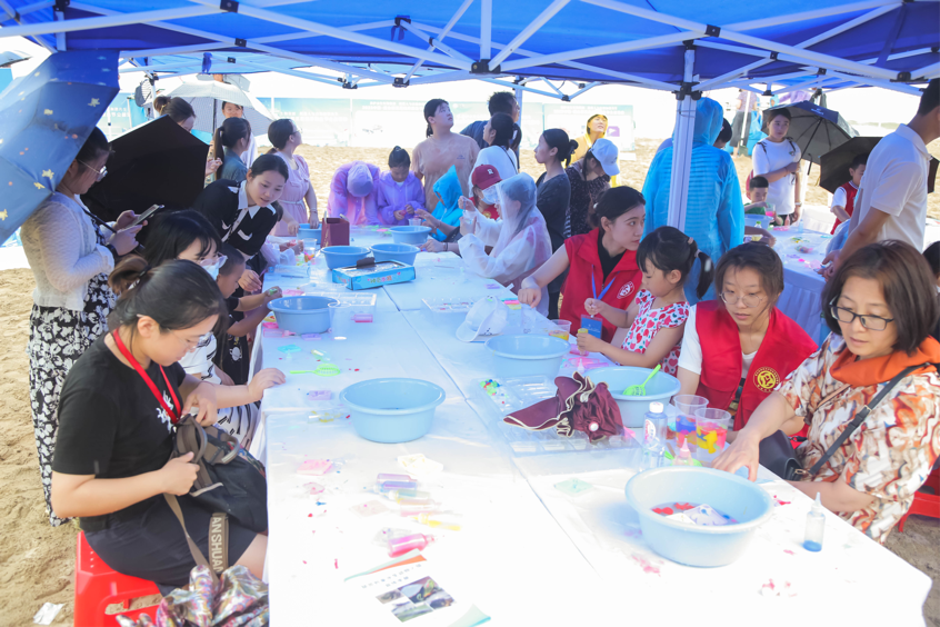 DIY互动环节,包括沙滩“寻宝大作战”、DIY制作和参与“集印章换奖品”活动,让市民们在互动过程学到海洋生态环境知识,增强环保意识。