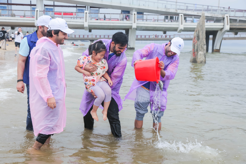 本次海洋放鱼节活动以“养护水生生物资源,促进人与自然和谐共生”为主题,分为启动仪式、公益演出、群众放鱼、DIY互动等环节。
