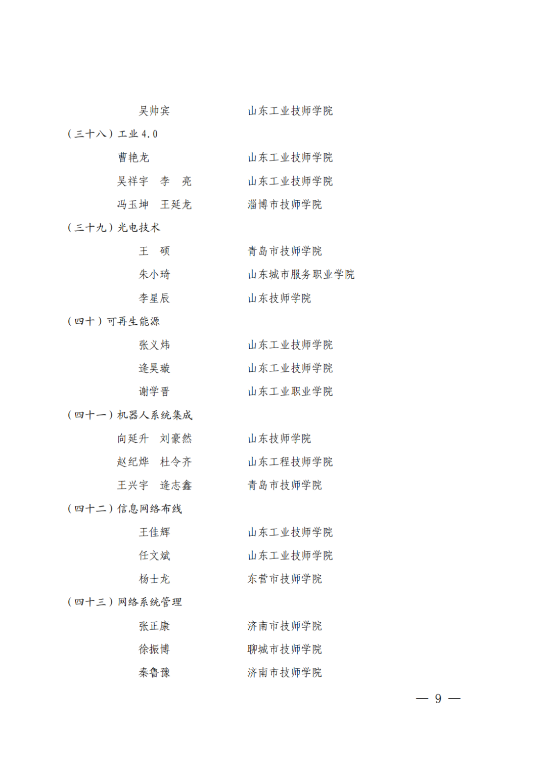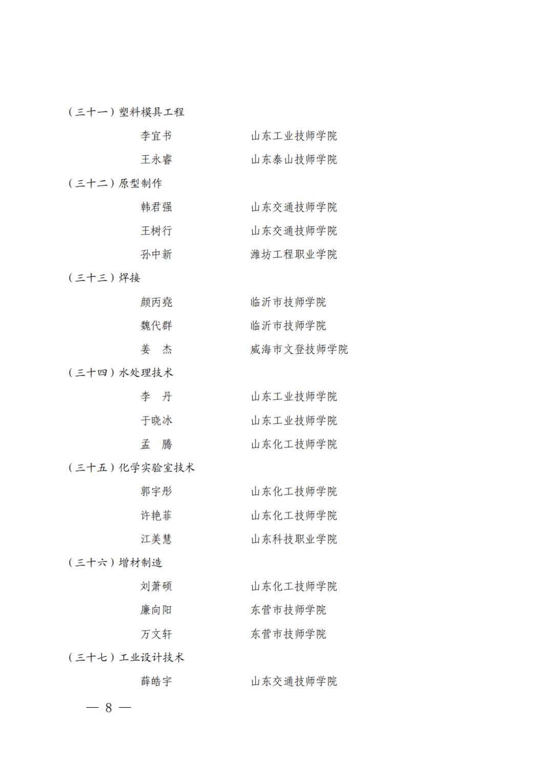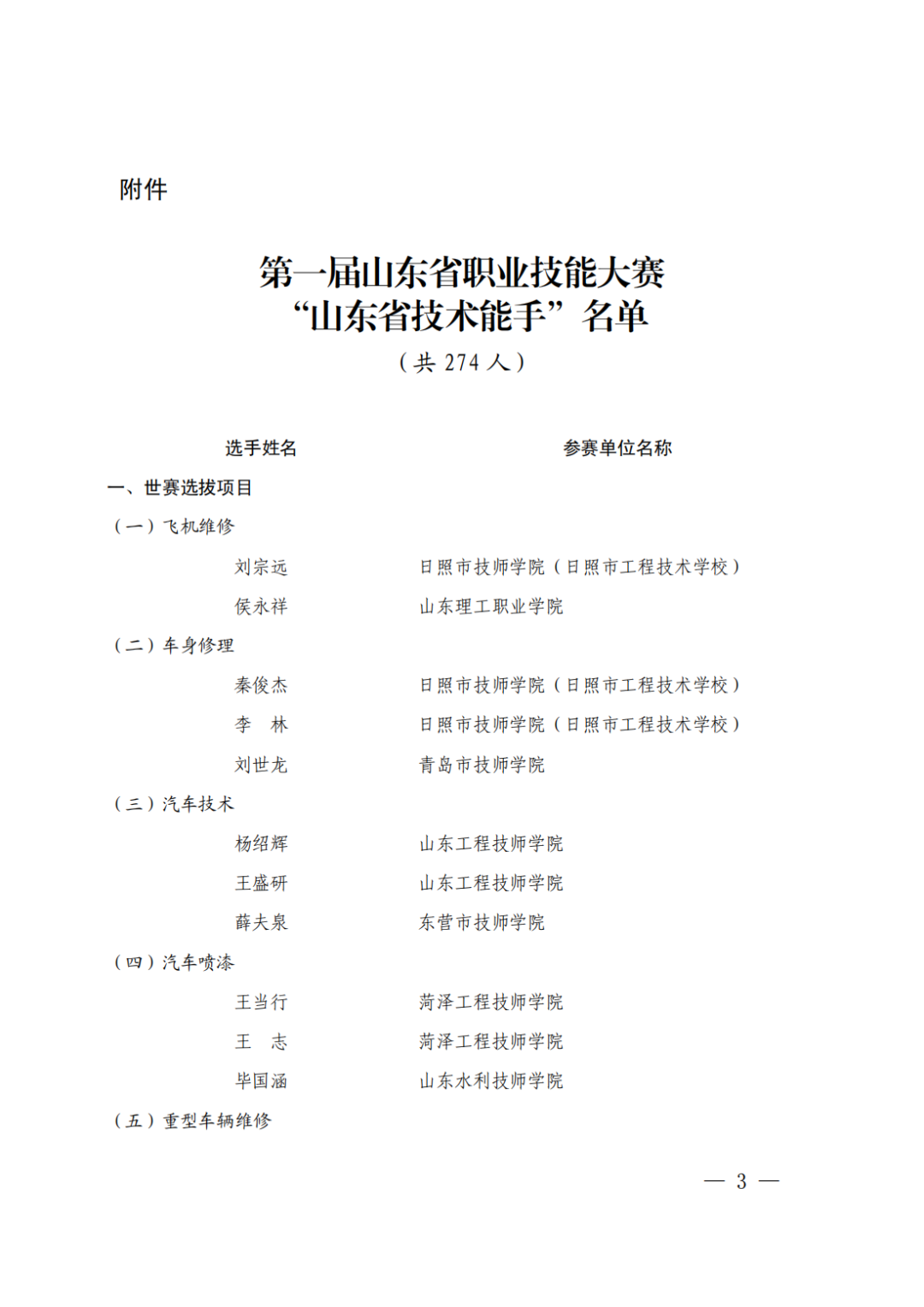 附件:第一届山东省职业技能大赛“山东省技术能手”名单