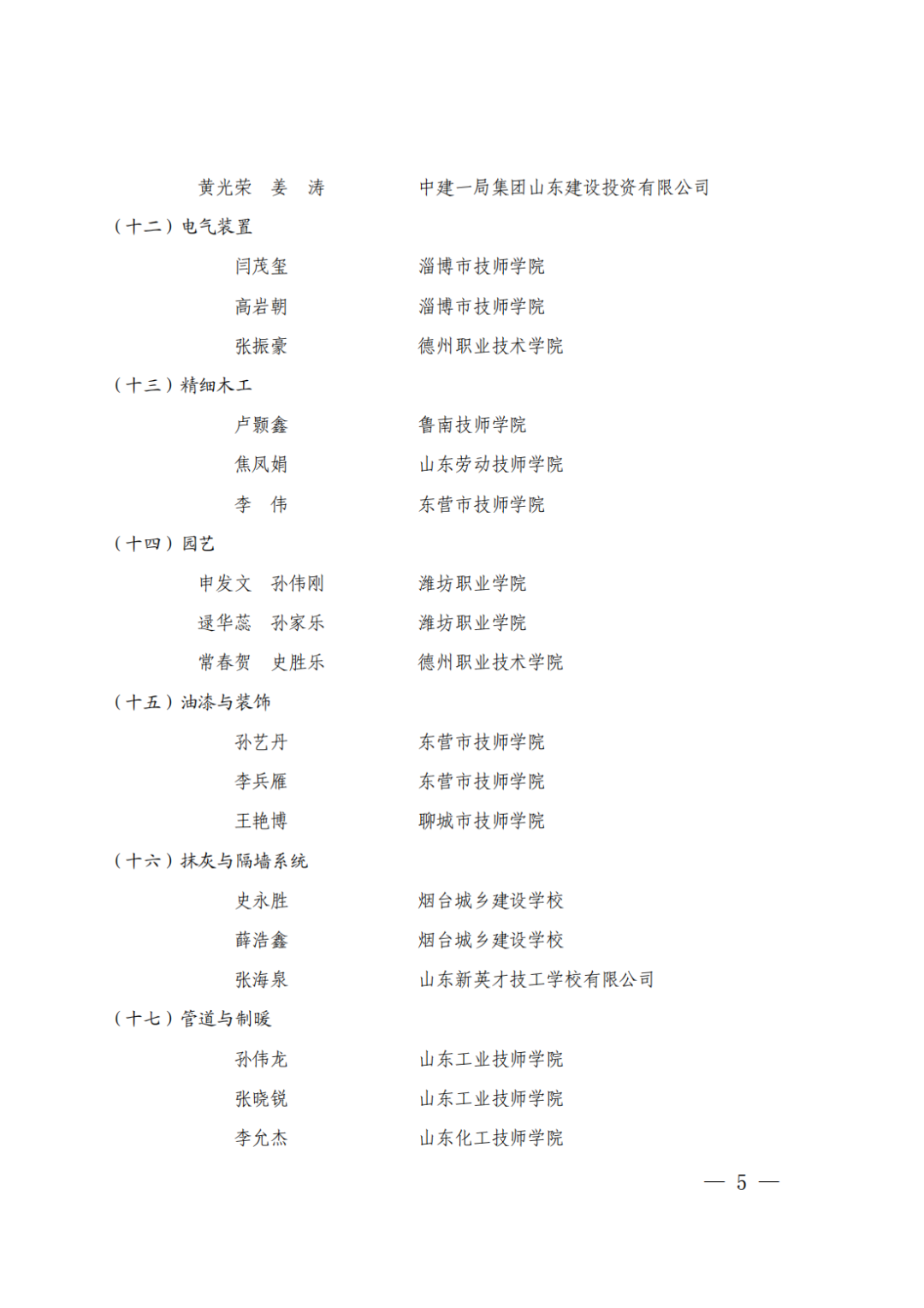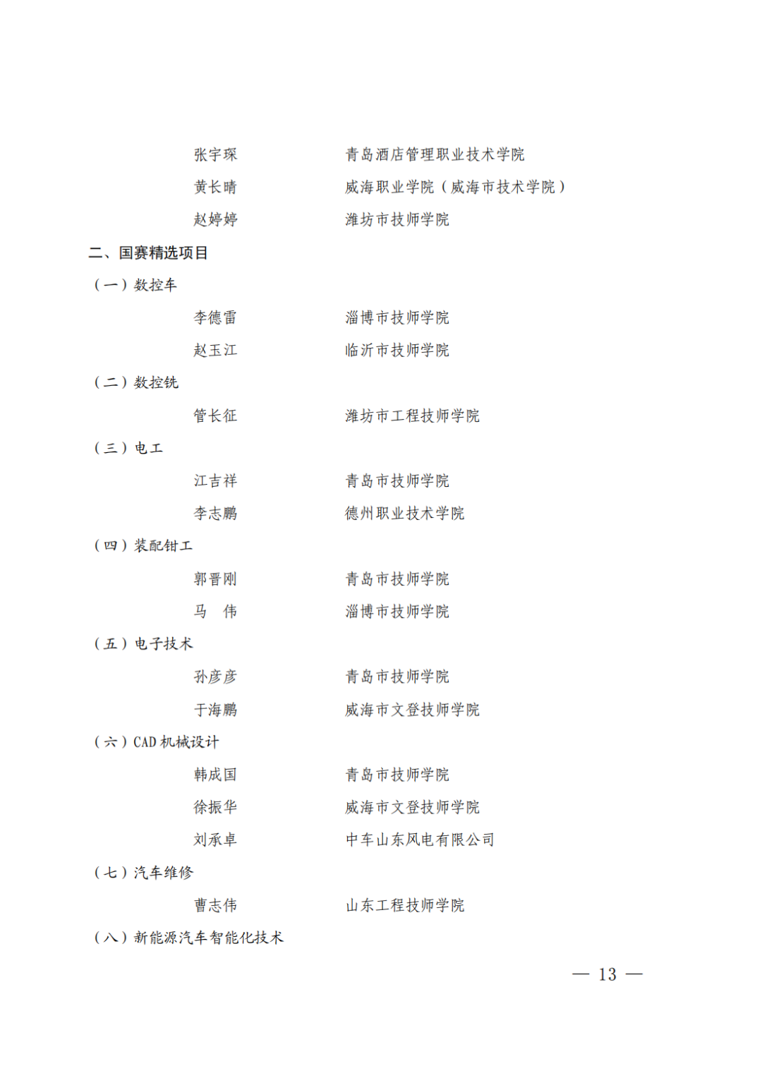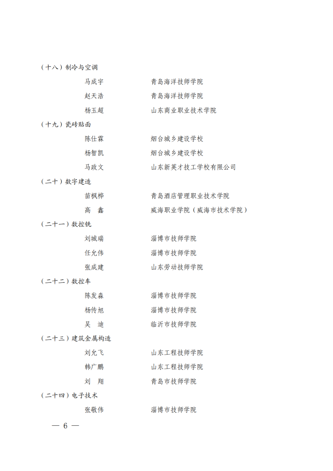 第一届山东省职业技能大赛“山东省技术能手”名单的通知