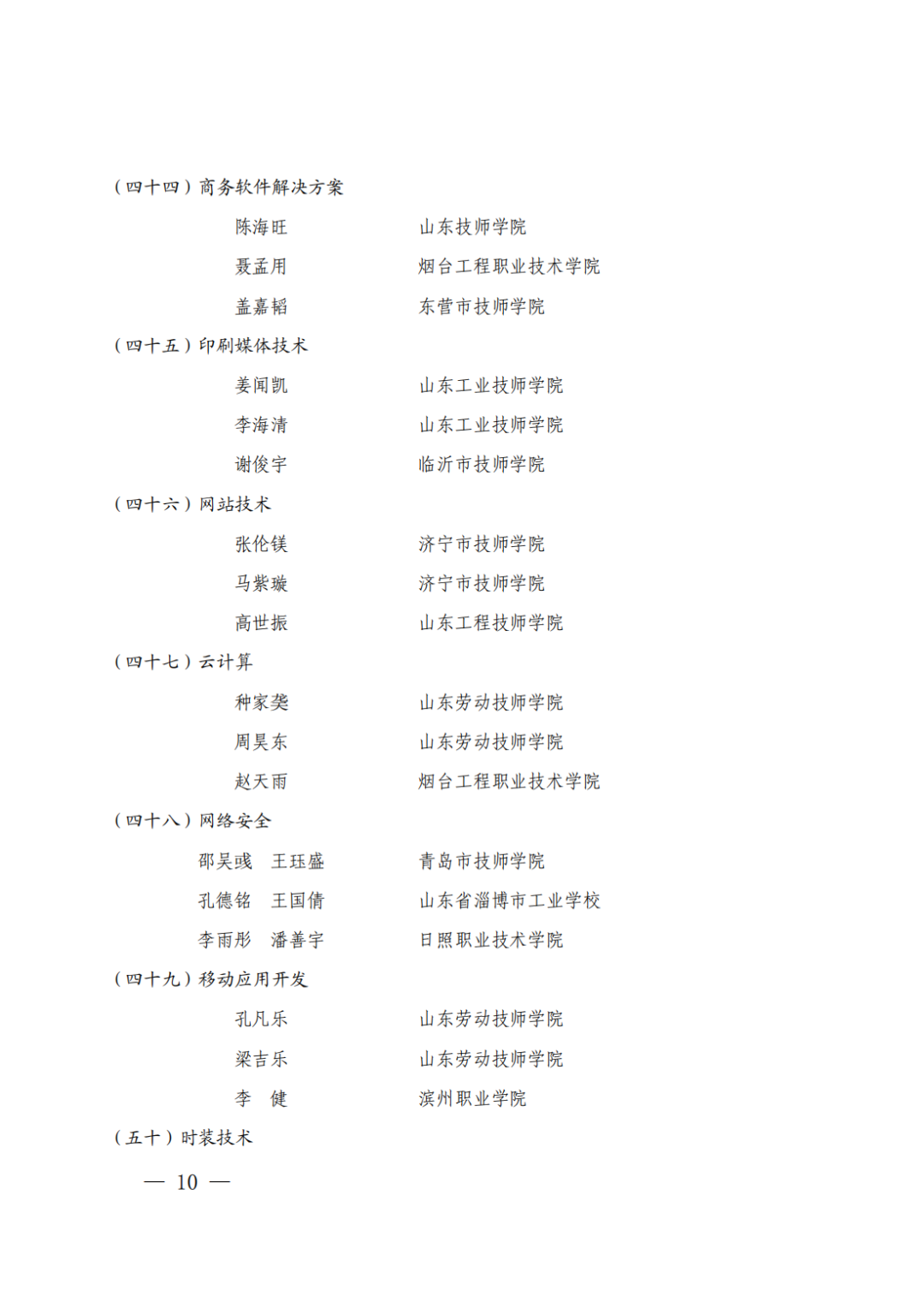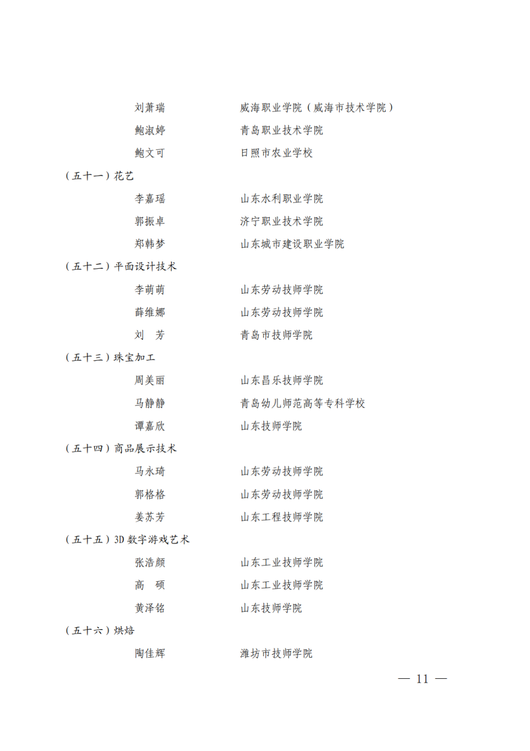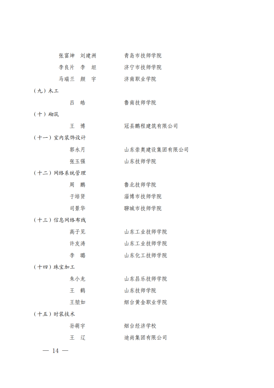 第一届山东省职业技能大赛“山东省技术能手”名单的通知