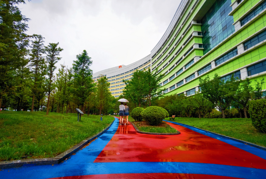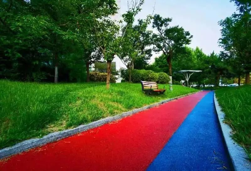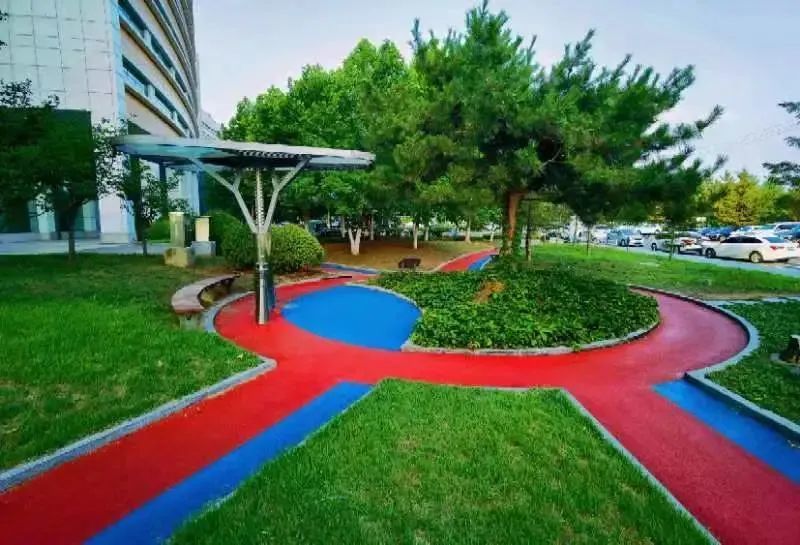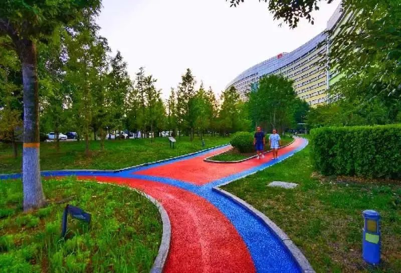 近日,阳光融和医院住院楼南侧休闲道路,经改造后焕然一新,进一步提升医院整体形象,为患者创造良好的就医和休息环境。道路彩色沥青路面,使用的蓝色和红色搭配,结合道路两侧绿植,整体色彩鲜艳,令人赏心悦目。