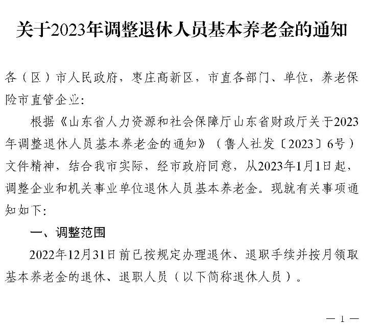 近日,枣庄市人社局发布《枣庄市人社局关于2023年调整退休人员基本养老金的通知》,从2023年1月1日起,调整企业和机关事业单位退休人员基本养老金。调整范围为2022年12月31日前已按规定办理退休、退职手续并按月领取基本养老金的退休、退职人员(以下简称退休人员)。这次调整退休人员基本养老金,采取定额调整、挂钩调整和适当倾斜相结合的办法。