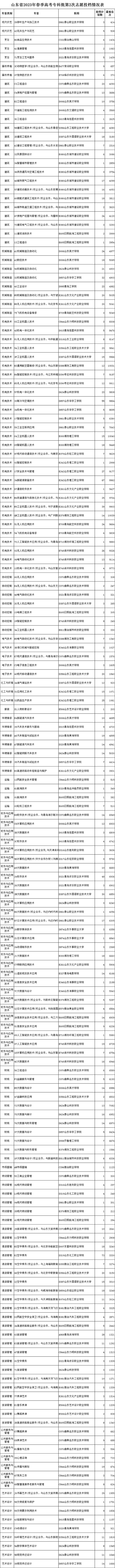 山东省2023年春季高考专科批第2次志愿投档情况表