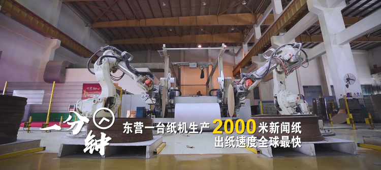 一分钟,东营一台纸机生产2000米新闻纸