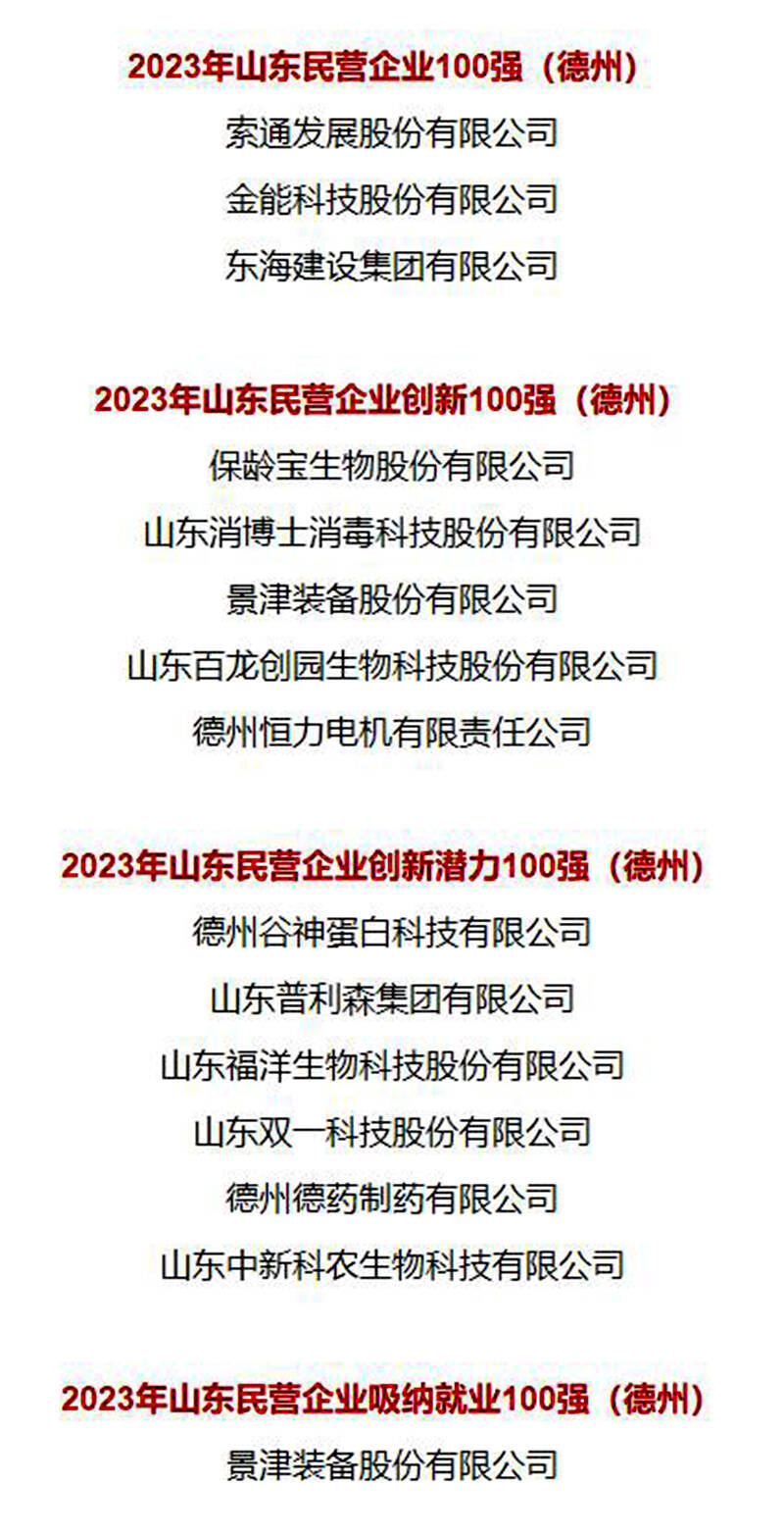 德州有3家企业入围山东民营企业100强,有5家入选山东民营企业创新100强,有6家入选山东民营企业创新潜力100强,有1家入选山东民营企业吸纳就业100强。