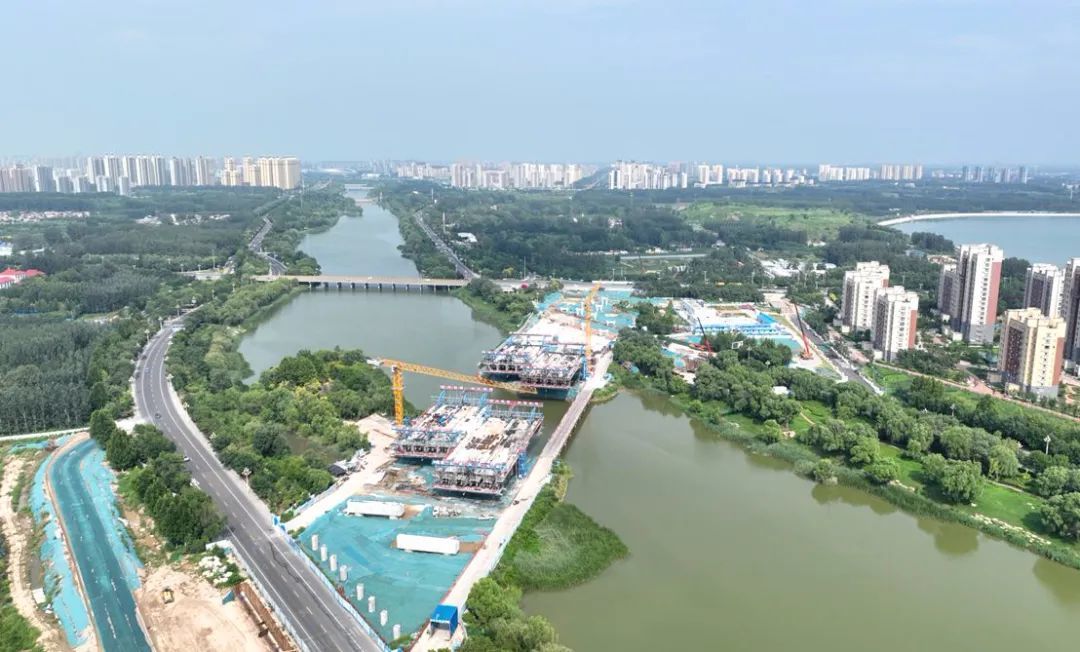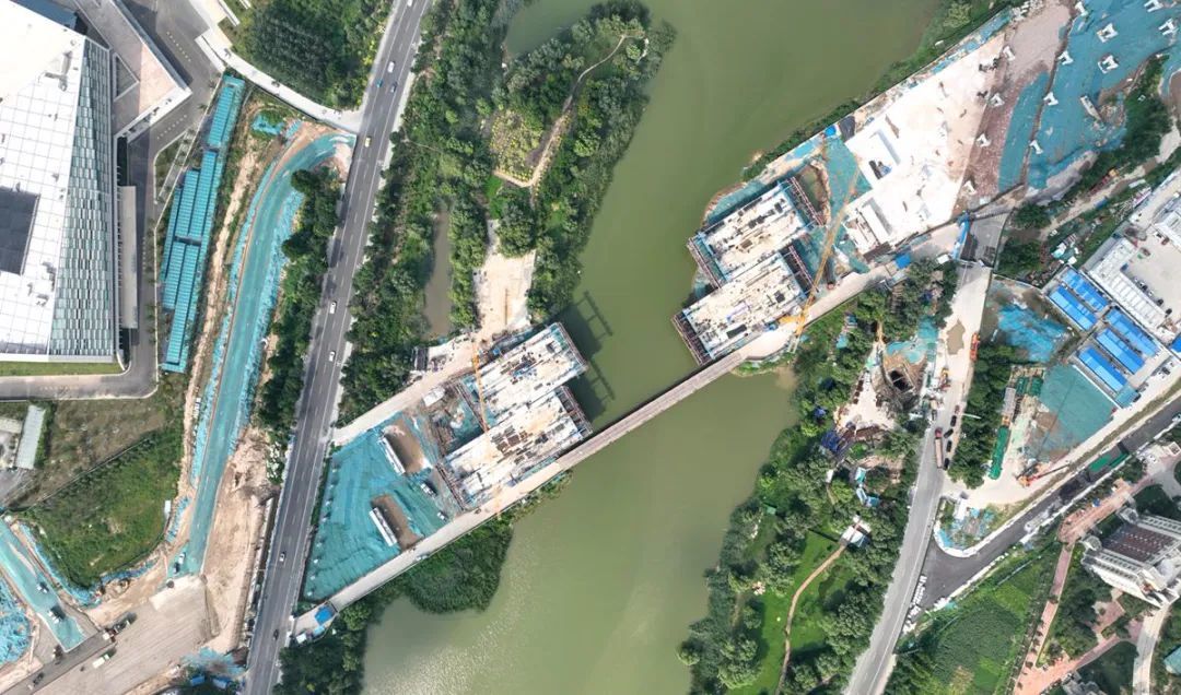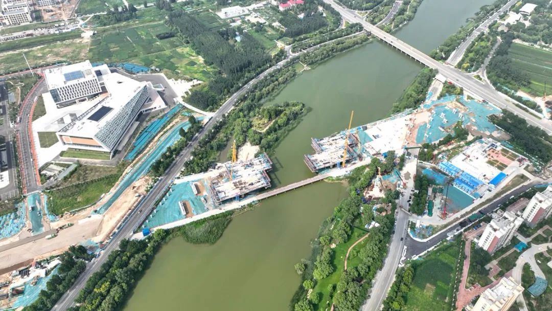 8月7日,聊城松桂大街徒骇河桥项目建设现场机器轰鸣一派繁忙景象。