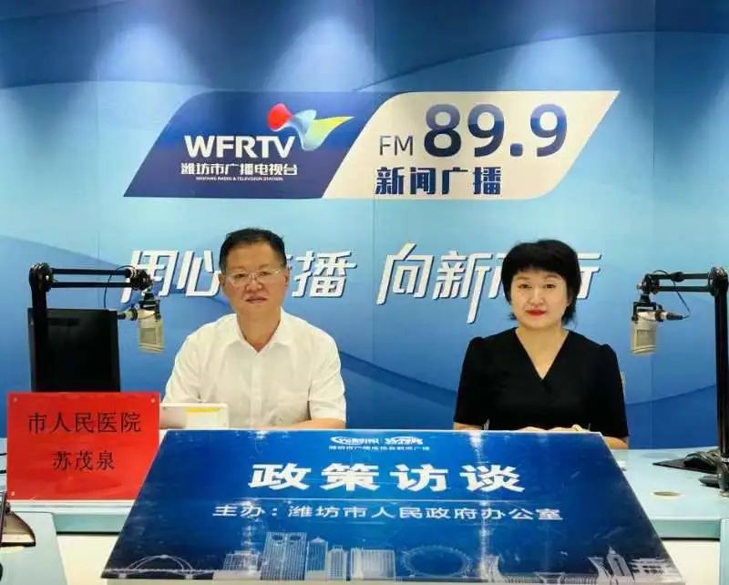 8月8日上午,潍坊市人民医院党委书记、院长苏茂泉,副院长王炳武,医保管理办公室主任赵桂凤一同走进潍坊新闻广播《政策访谈》直播间,与听众朋友们针对医院落实市十八届人大三次会议精神、近期的主要工作及大家关心的问题进行了分享。
