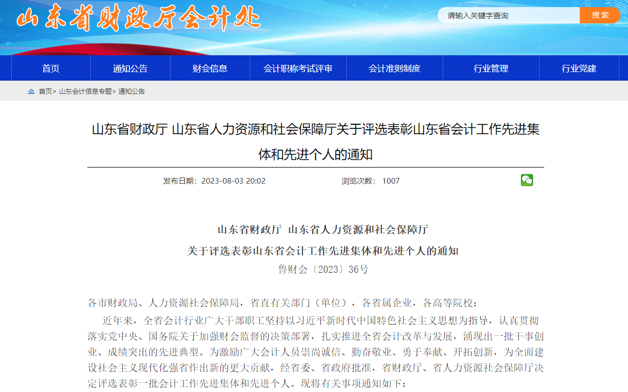 原标题:100个先进集体,100名先进个人!山东组织开展会计工作“双先”评选