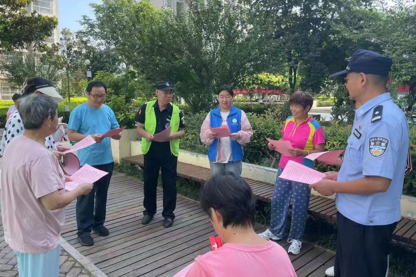 针对立秋以来市民乘凉、外出活动增多的有利时机,为了进一步做好电信网络诈骗违法犯罪活动防范工作,济宁市公安局市中区分局越河派出所联合社区居委,在早晚两个时段,错时开展反电诈宣传活动。