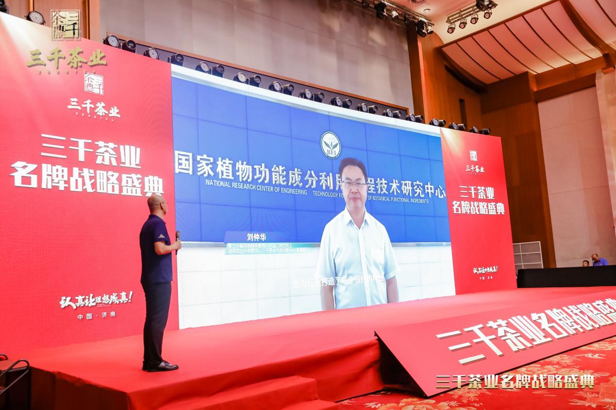 第二十届中央候补委员、中国工程院院士、湖南农业大学教授刘仲华以视频方式向三千茶业发来祝贺。刘仲华院士表示,希望三千茶业继续发挥企业平台优势,运用茶科技的力量更多的赋能茶村、茶农,驱动茶产业高质量发展,为乡村振兴做出更大贡献。