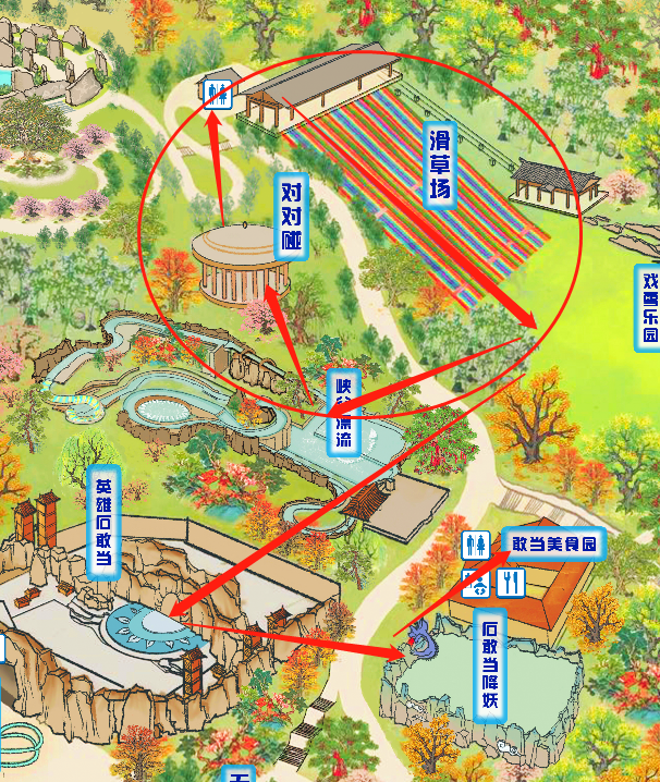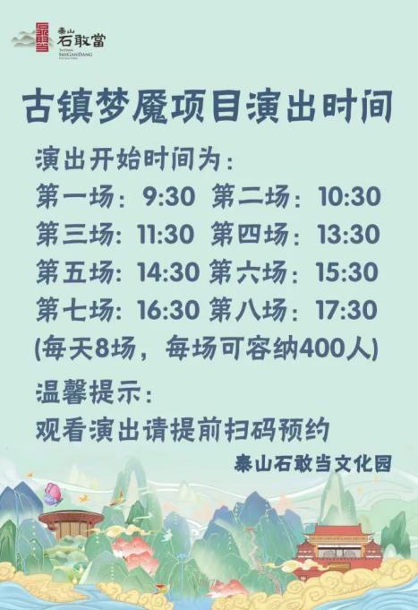 (古镇梦魇、飞越泰山、盘古开天三个项目距离较近,可以根据预约和排队时间变化先后顺序)