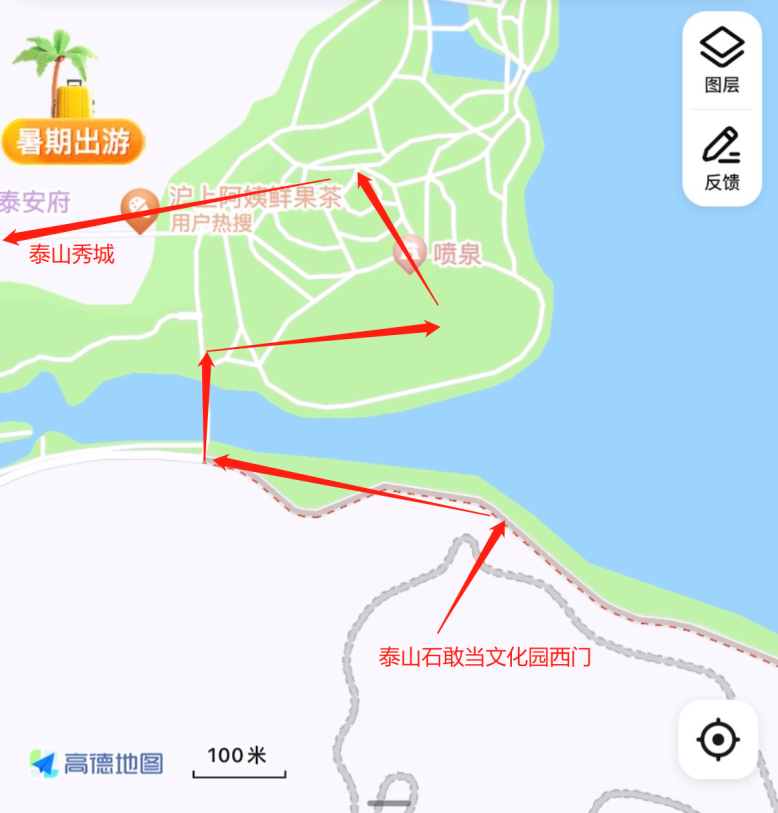 如果您选择自驾或乘车出行,直接导航至“泰山石敢当文化园北停车楼”,经售票处到达检票口。