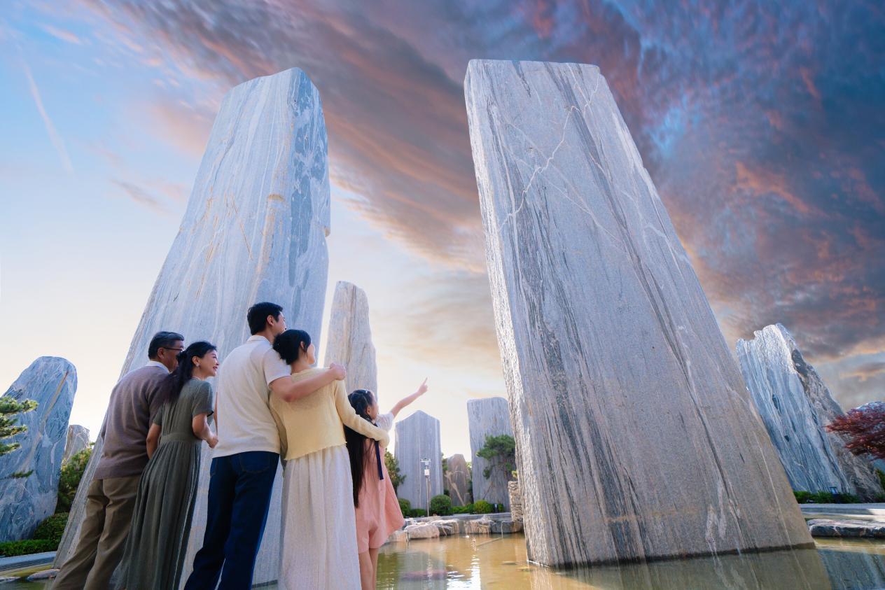 石林八卦阵:由五十余块天然巨型泰山石组成。怪石林立、形态万千,巨石纹理如一幅幅山水巨画。