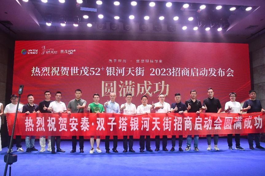 签约仪式结束后,领导和品牌嘉宾上台进行了合影留念,这也标志着此次安泰双子塔·世茂52+银河天街项目招商启动发布会的圆满结束。