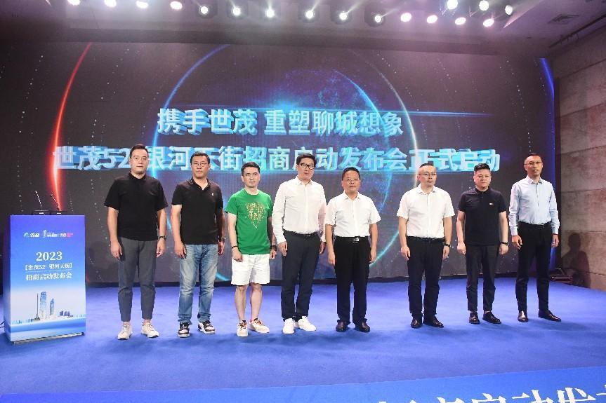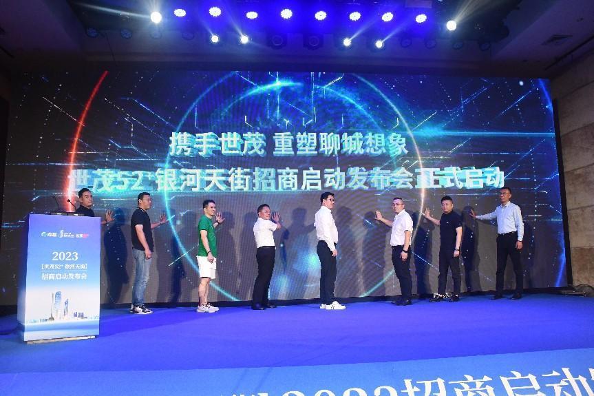 致辞结束后,邀请了聊城市安泰城乡投资开发有限责任公司董事长王孟江 、会凌(山东)城市开发投资有限公司董事长王勇飞、上海世茂股份有限公司华北公司总经理刘春宇、安泰·世茂52+项目总经理唐瑞、闫府私房菜 总经理韩宁、西北45℃ 总经理赵伟、动物园咖啡总经理丁建江、山东广播电视台齐鲁频道融媒营销部副主任丁子超上台共同为安泰双子塔·世茂52+银河天街项目启动。