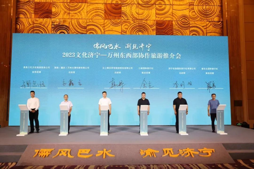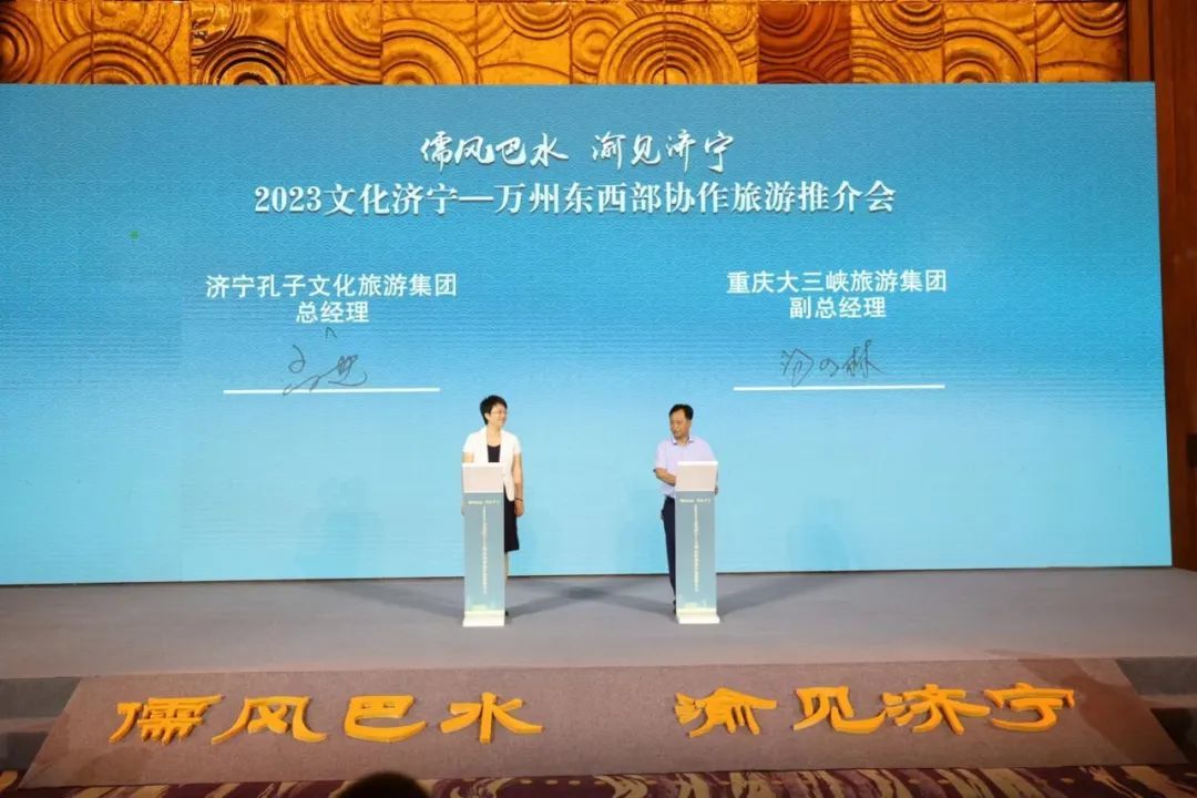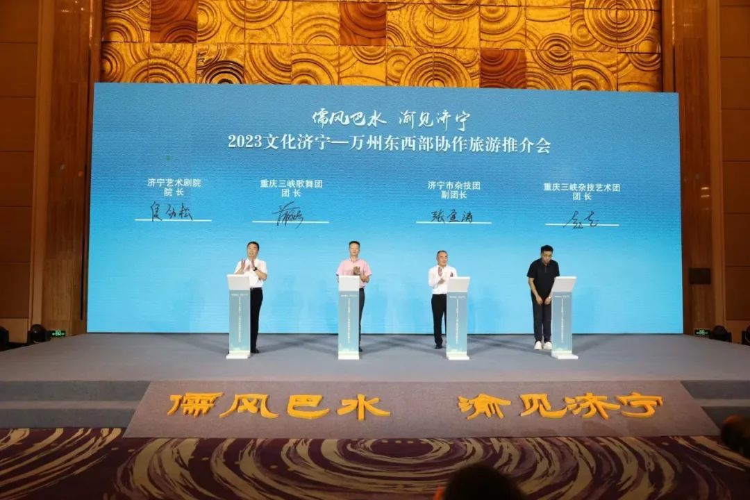 推介会上,济宁市文化和旅游局现场推介了全市文旅资源,金牌导游推介了东方圣地拜谒之旅等9大精品旅游主题线路;济宁市文化和旅游局与万州区文化和旅游发展委员会、济宁孔子文旅集团与万州大三峡旅游集团、两地文艺院团、文旅企业分别签订合作协议。