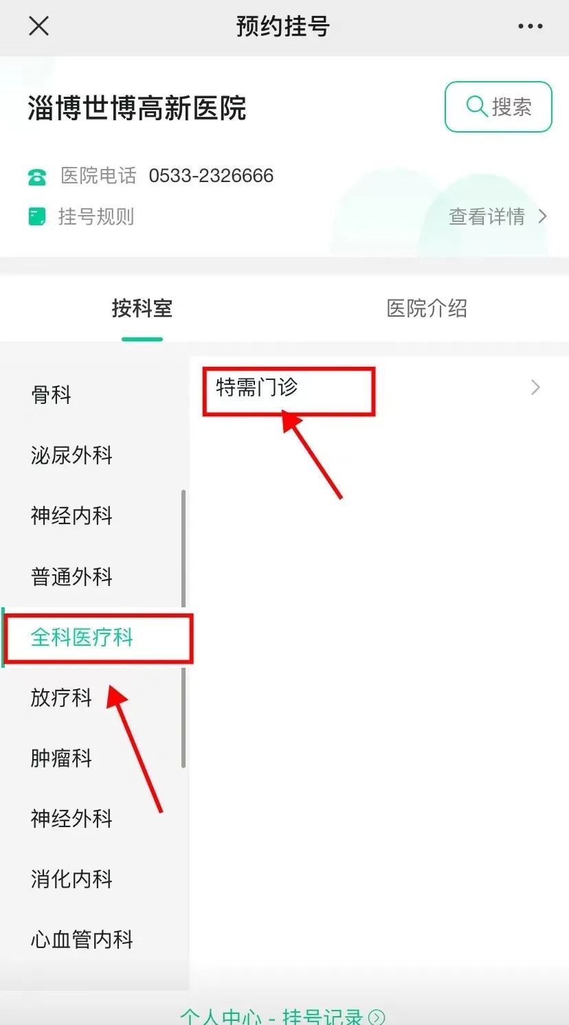 2选择“淄博世博高新医院”,预约挂号