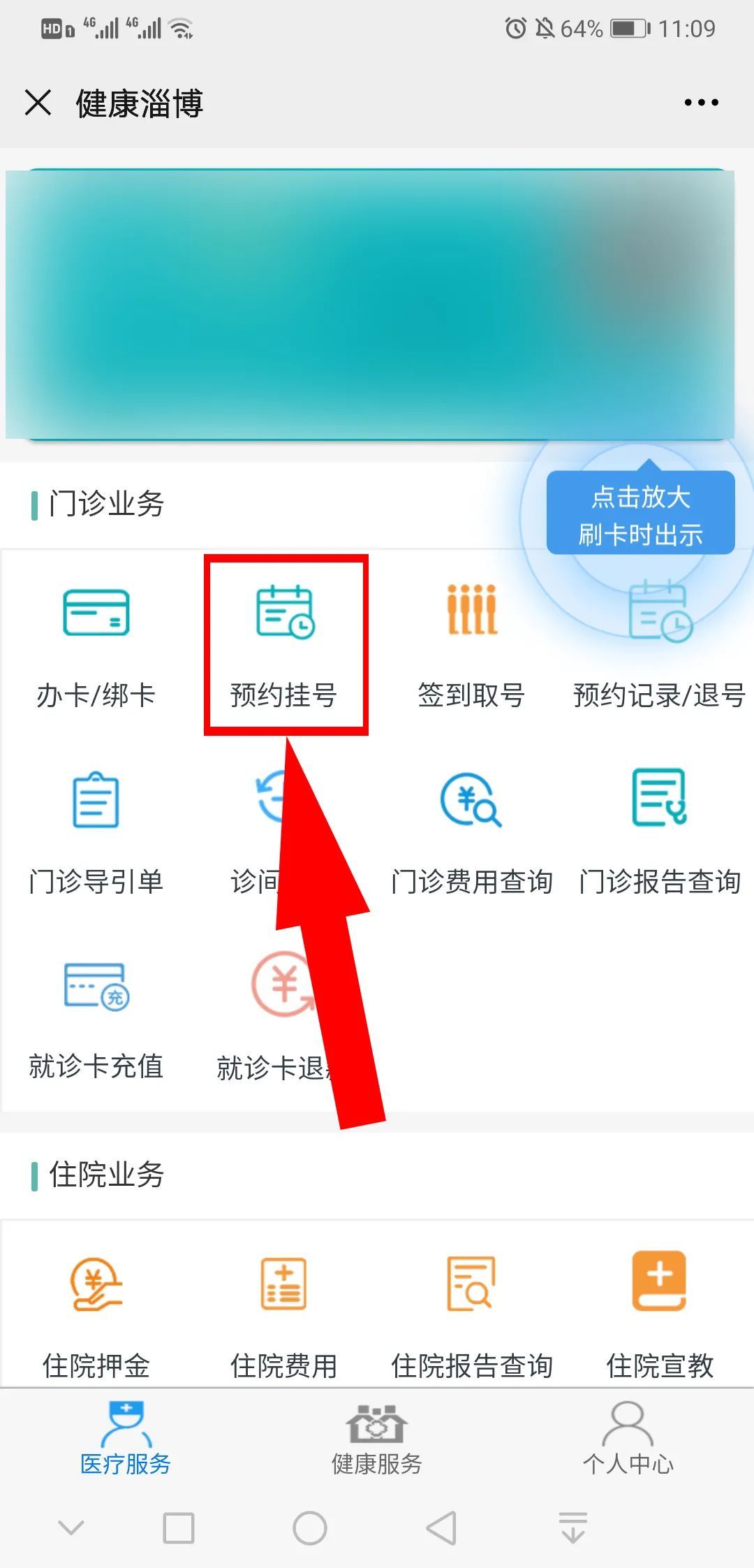 ✦选择公众号下方【医疗健康】,点击【预约挂号】进入【预约诊疗服务系统】