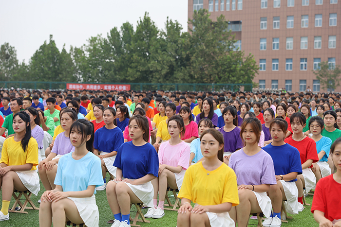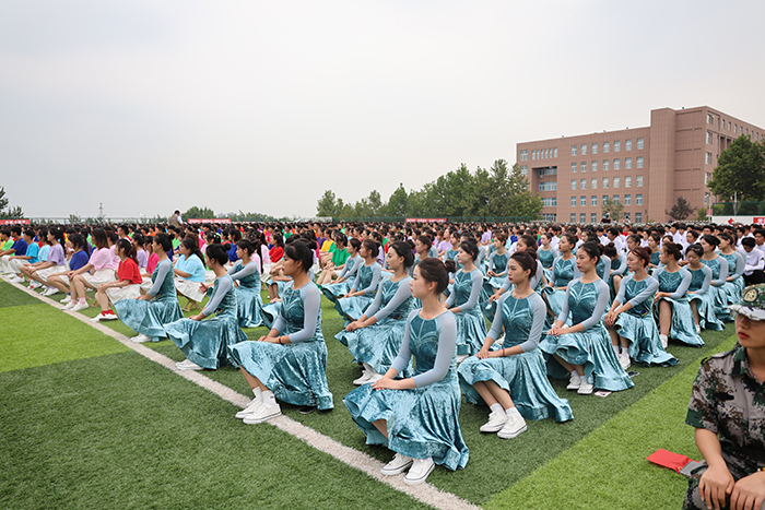2023级新生进行了精彩的汇报表演。红鼓舞、手语操、军事技能表演、拉丁舞、校园舞、啦啦操、经典诵读等逐一上演,精彩纷呈,新生们以过硬的身体素质和良好的精神状态展示了齐鲁理工学子的青春风采。