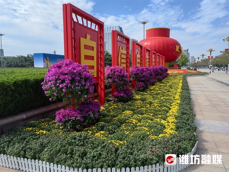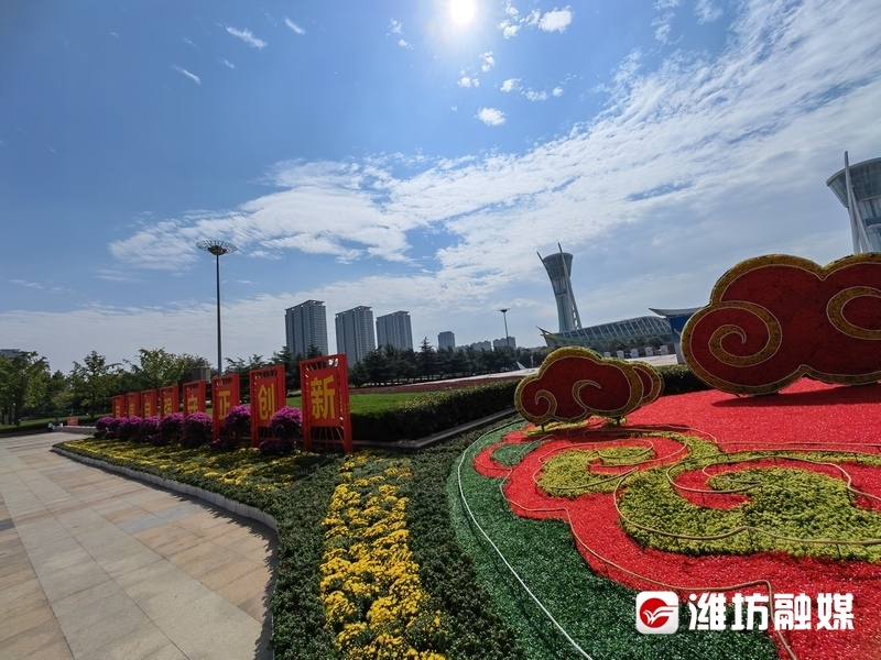 9月23日,记者在潍坊市人民广场看到,崭新的景观已经亮相,营造出温馨、喜庆、浓烈的节日氛围,以美丽崭新的形象喜迎国庆。