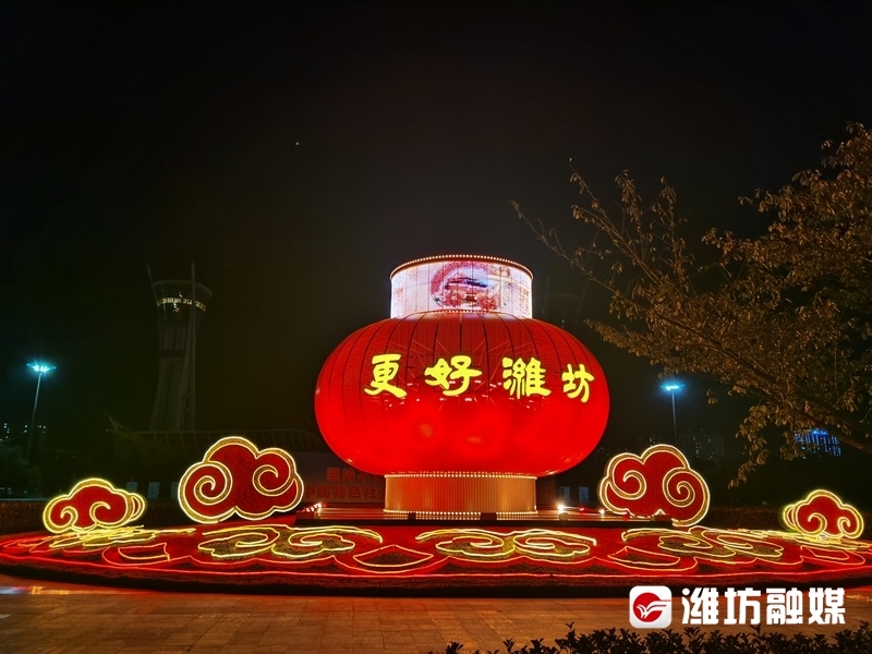 人民广场“花海”保留原有造型,借鉴北京天安门广场花篮底部基座花坛造型。花坛花纹采用祥云图案,以红、黄、绿三种颜色构图,简洁大气,寓意祥瑞之云。外侧采用缀花图案紧紧围绕,增设立体祥云图案,与原有大红灯笼景观完美融合,相得益彰。人民广场标志性建筑灯笼景观的主题为“更好潍坊”,彰显我市努力建设实力强品质优生活美的更好潍坊的信心和决心。