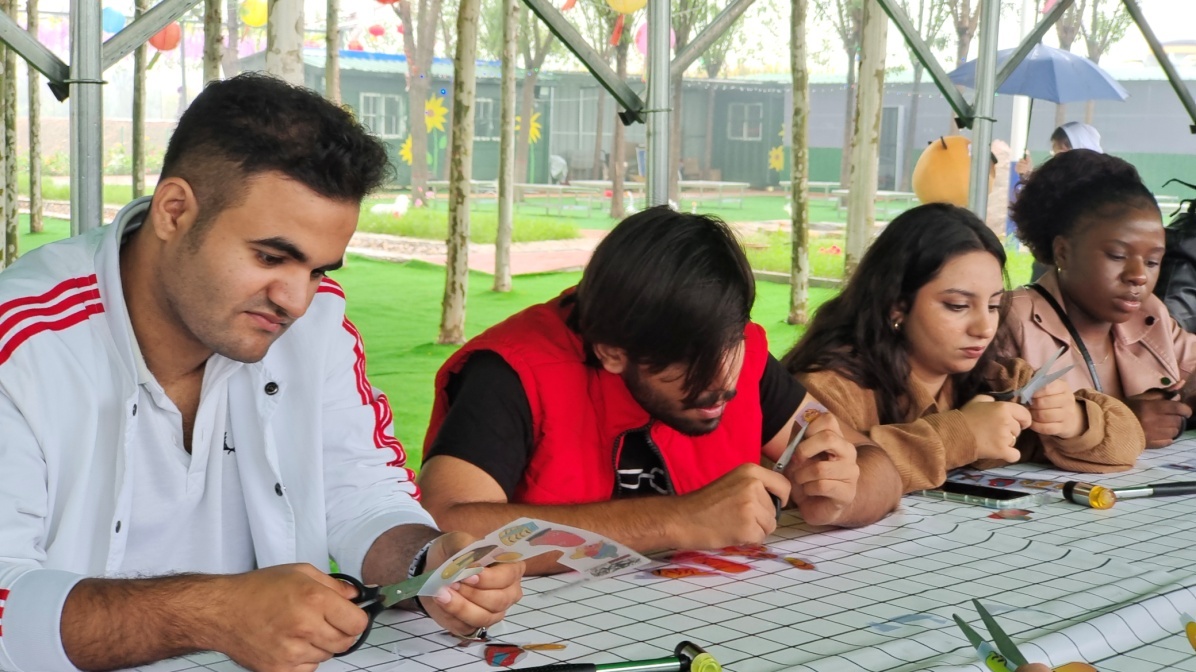 除了月饼,外国留学生还学习了皮影和灯笼制作,并写下美好祝愿,将灯笼挂在林间,在老师带领下体验泰山皮影戏,感受节日氛围的同时,体验中华传统文化的独特魅力。“我做的是孙悟空的皮影,虽然比较复杂,但我很享受这个过程。”来自巴基斯坦的留学生海德说。