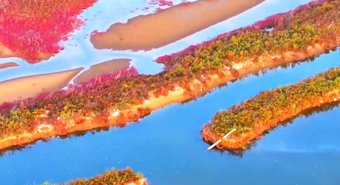 秋意渐浓,昌邑浅海滩涂上的碱蓬一片火红,达到“颜值”巅峰。浓烈的红色与碧海连天相映,绚丽斑斓,蔚为壮观。红为底色,青黄蓝绿交融,在滩涂上铺展开一幅绝美的画卷。一望无际的“中国红”将秋日美好尽数呈现,为美丽昌邑“代言”。(闪电新闻记者 于刚 通讯员 齐英杰 刘素平)
