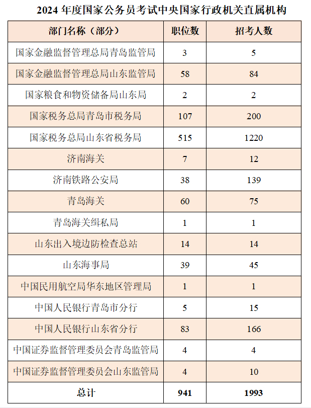 今年涉鲁招考人数有所上升,对于广大考生,特别是有志于报考涉鲁职位的考生来说是一大利好。2024年度涉鲁职位相关招考部门增加了国家金融监督管理总局青岛监管局、国家金融监督管理总局山东监管局、中国民用航空局华东地区管理局、中国人民银行青岛市分行、中国人民银行山东省分行5个部门,共150个岗位。