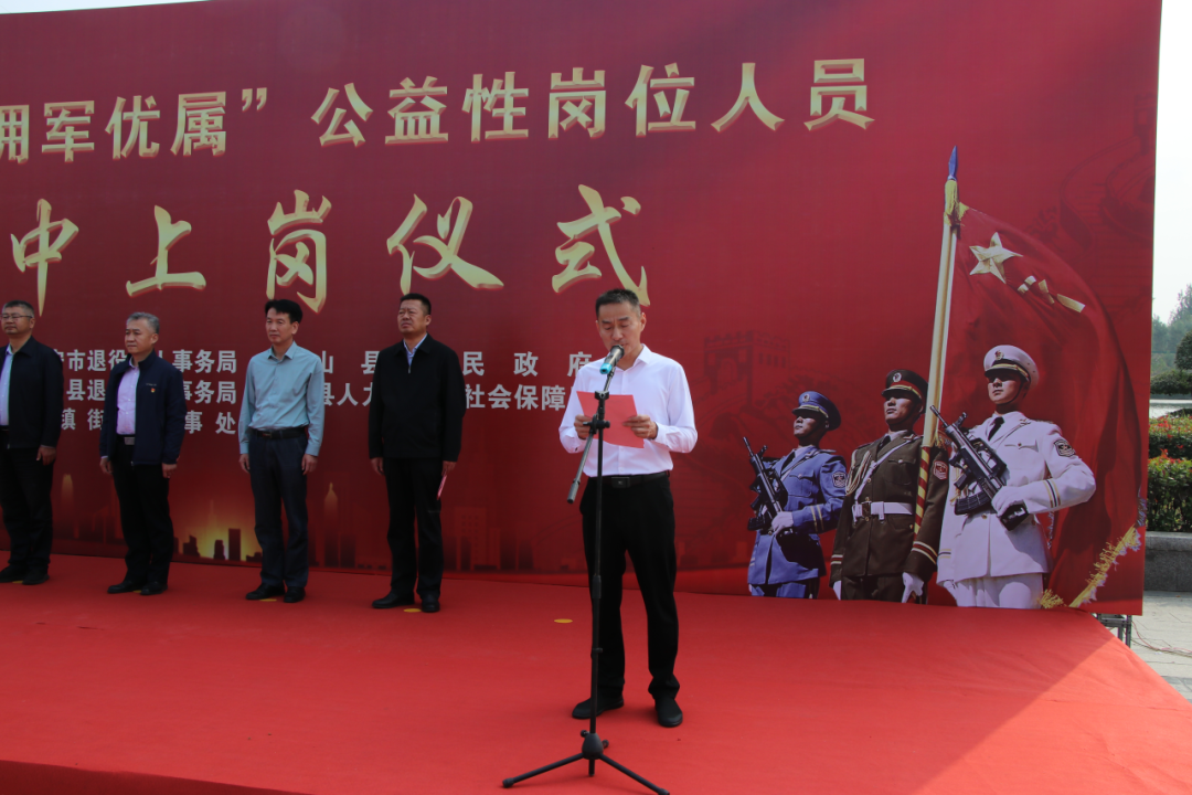 上岗仪式由县退役军人事务局党组书记、局长李冰主持,与会领导为上岗人员颁发了“拥军优属”公益性岗位人员上岗聘书。