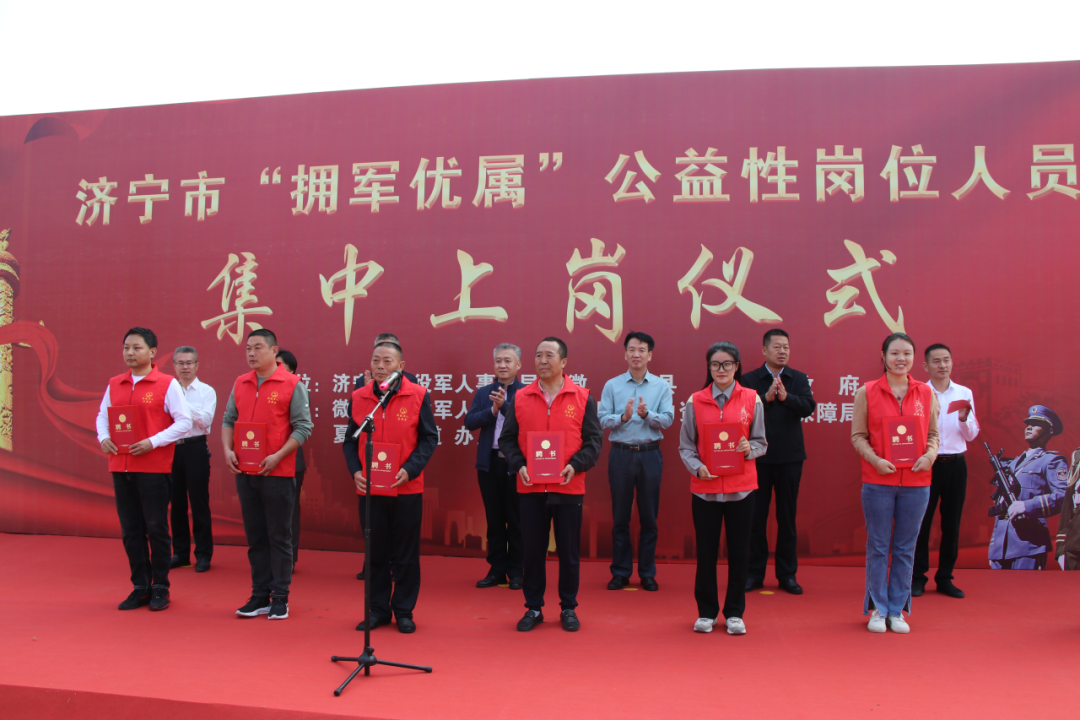 10月13日,济宁市“拥军优属”公益性岗位人员集中上岗仪式在微山县双拥主题公园举行,标志着济宁市“拥军优属”公益性岗位队伍正式组建。济宁市退役军人事务局党组成员、副局长赵海林出席并讲话,济宁市退役军人服务中心主任高卫东、济宁市公共就业和人才服务中心副主任王著华,微山县副县长、微山县公安局局长孙晓东等市县领导出席活动。