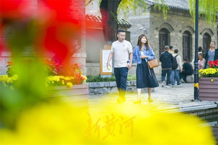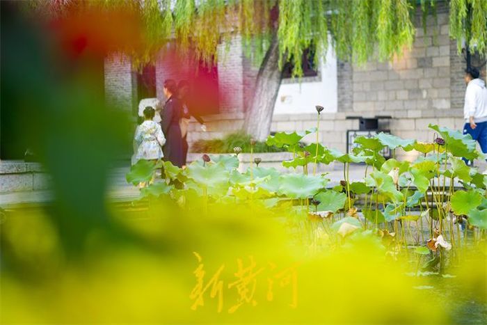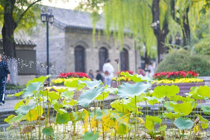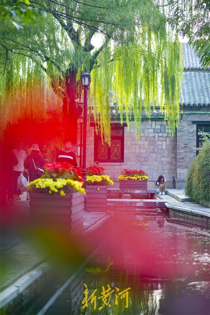 天高云淡,一叶知秋。10月14日,泉城暖阳高照,最高气温达到23℃,在明府城老城区,垂柳逐渐由深绿变成金黄色,成片的玫红色百日菊绽放绚丽的花朵,温暖的阳光洒在石板路上,众多市民在这略带寒意的季节里,徜徉漫步于老城街巷,用镜头定格美丽。