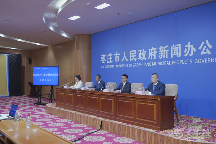 11月8日,解读2023枣庄市稳外贸政策措施新闻发布会在枣庄会展中心举行。枣庄市商务局党组成员、副局长、新闻发言人郭立波,中国信保山东分公司临沂营业部客户经理张涛,山东港口集团枣庄代表处主任王鹏出席发布会并回答记者提问。