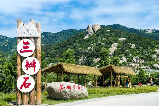 三瓣石村位于威海市文登区界石镇樱桃谷美丽乡村片区北部,因著名景点“莲花三瓣石”而得名,是从正东登“海上仙山之祖”昆嵛山主峰泰礴顶的必经之路。村庄被群山环抱,西靠泰礴顶、北倚龙门崮,空气清新、绿树环绕、山泉流过。