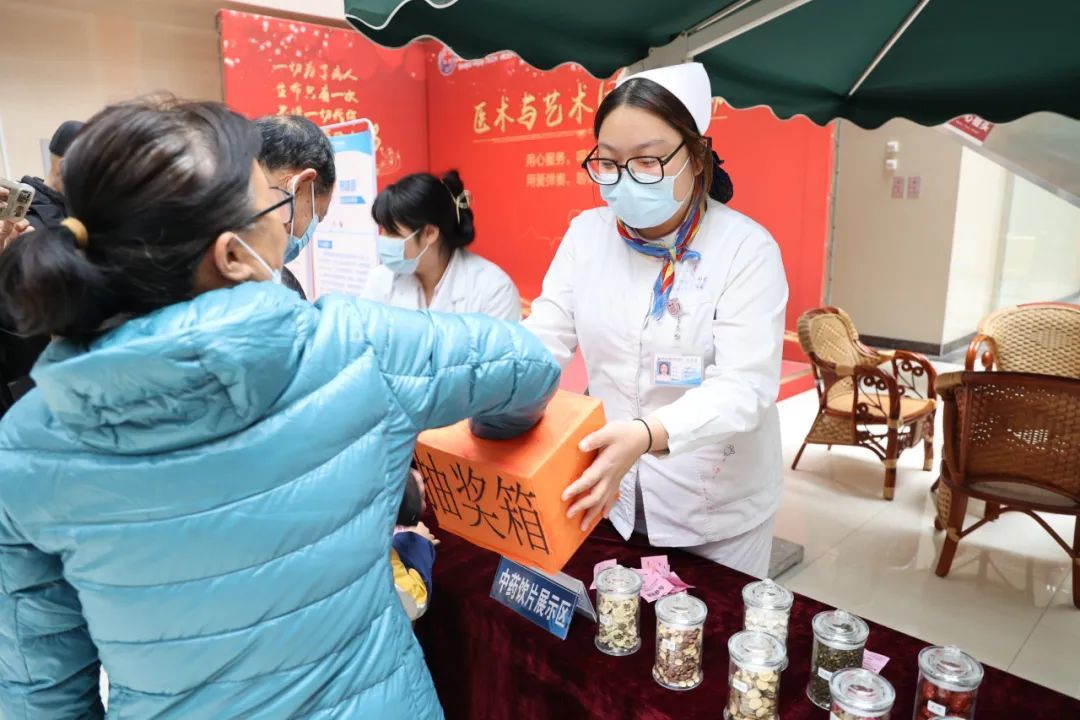 现场设立讲座专区,膏方、养生粥免费品尝体验区,中西医结合科主任邢皓颢现场为大家讲解中医药相关知识并解答市民疑惑,开展了抽奖环节吸引众多市民前来驻足体验。