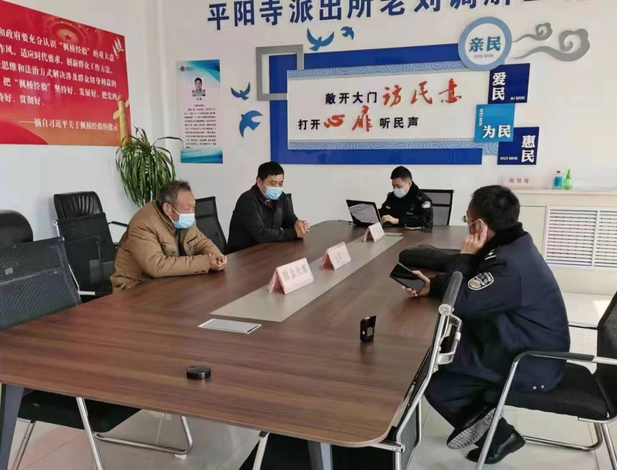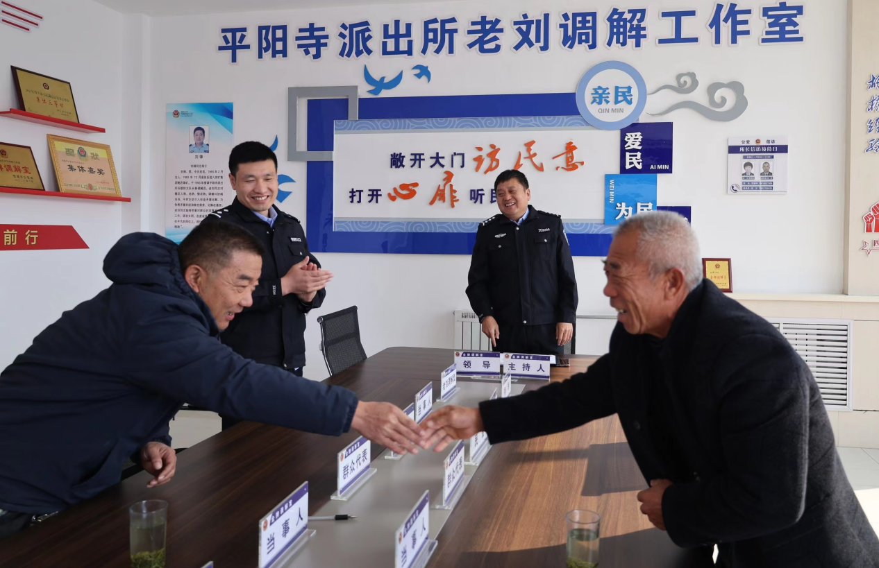 平阳寺派出所以为民服务为宗旨,以平息事端为准则,以处理矛盾为根本,积极践行新时代“枫桥经验”,全力做强“金牌调解室”,树牢“全心全意为人民服务”的宗旨意识,坚持“群众利益无小事”的原则,全力确保“矛盾不上交”的良好态势,怀着热心、诚心、公心、耐心去化解处理每一起矛盾纠纷,一块块压在群众心头的冰疙瘩就此渐渐消融。