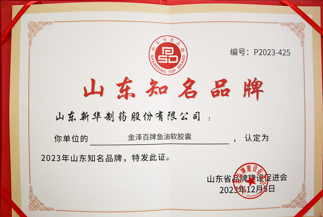 12月5日,2023年山东品牌年会在济南成功举办。会上,“2023年山东知名品牌认定名单”重磅发布,新华制药的金泽百牌鱼油软胶囊入选2023年山东知名品牌(产品)名单。公司党委副书记、纪委书记、工会主席徐列受邀参加并致辞。