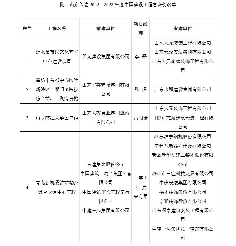12月10日,中国建筑业协会公布2022—2023年度中国建设工程鲁班奖(国家优质工程),全国共246项工程荣登榜单,山东省18项工程榜上有名。