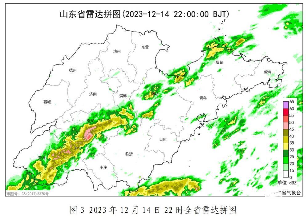 目前,降水回波主要位于菏泽、泰安、淄博、潍坊、青岛和烟台市。