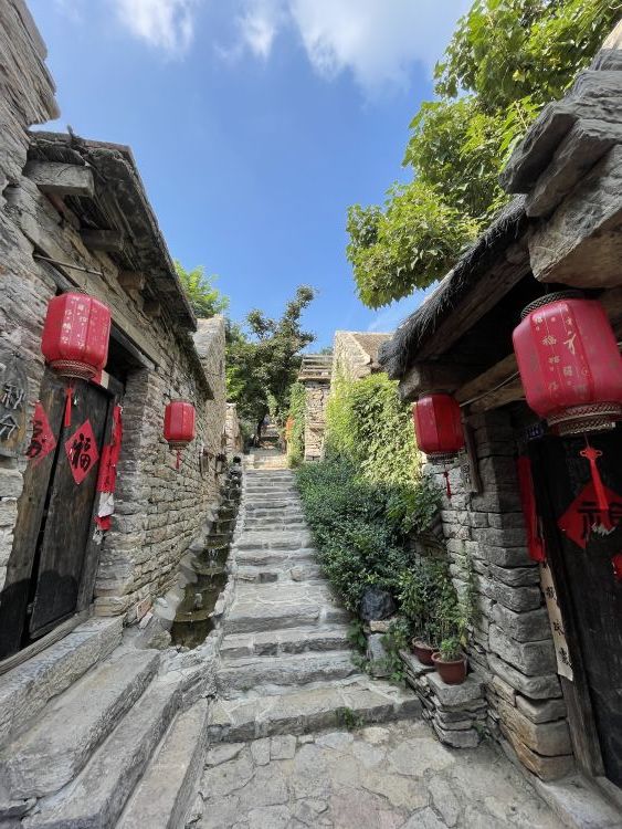院耕乡村长城驿站位于齐长城脚下,坐落在齐长城古村落石子口村,村内有一段保存原貌最好的齐长城,号称“一村跨两国”,齐长城重要关口——锦阳关也坐落于此。村内齐长城采用干插石的垒砌方式,单面长城垛口延绵千米,城墙高处足有七八米。2600年齐长城延绵环抱,百套百年石屋彰显文化厚重,24节气精品民宿感受“外朴内秀”的乡土生活,庭院内泉水喷涌,石街巷山水潺潺,古香古色,花团锦簇。