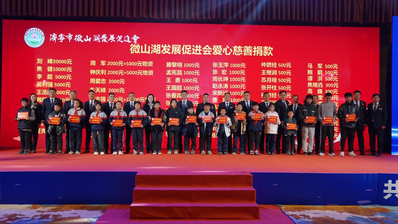 微山湖发展促进会自成立以来,致力于爱心公益活动,弘扬优秀企业家精神,积极回馈社会,奉献爱心。近几年来共资助贫困学生500多名、捐助善款和物资 500余万元,勇担企业社会责任、弘扬中华传统美德,做出了商会贡献。2024年,按照计划,微山湖发展促进会将资助100位贫困孩子。