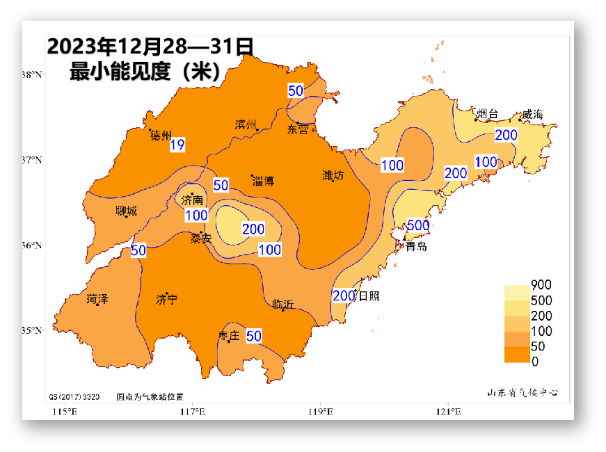 2023年12月28—31日,出现全省范围持续大雾天气,大部地区能见度低于200米,德州、济宁等13市能见度不足50米。大雾导致大部分高速收费站封闭或限行。