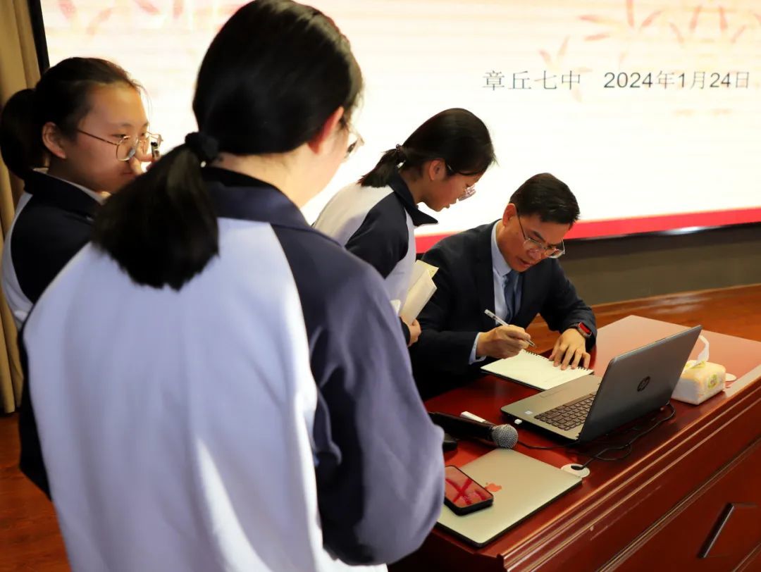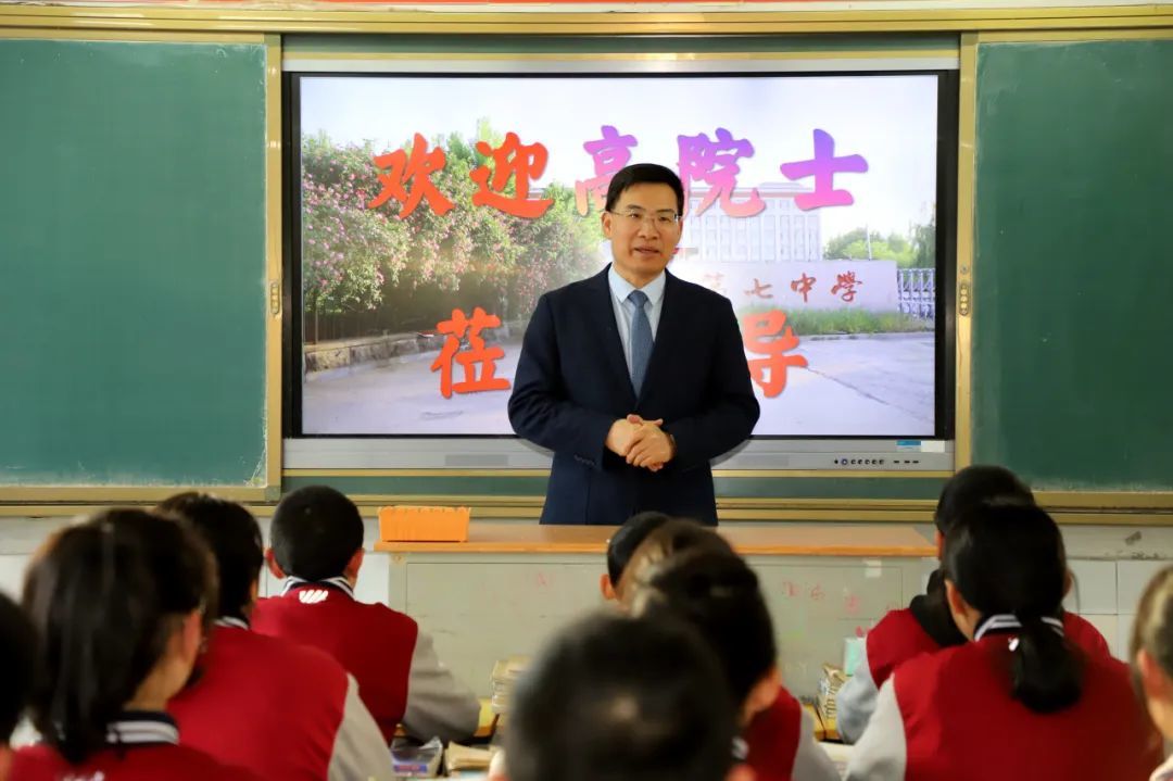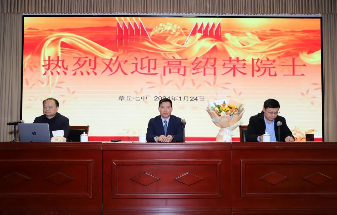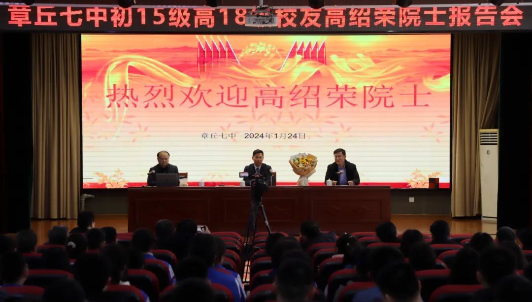 1月24日下午,中科院院士高绍荣回到母校章丘七中,为全体学生做励志宣讲。学校领导班子成员、师生代表现场听取宣讲,其他师生通过直播在教室收听收看。