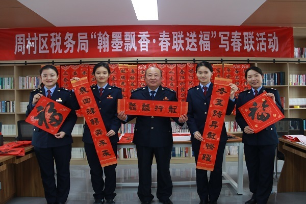 为弘扬中华优秀传统文化,积极营造团结奋进、喜庆祥和的节日氛围,2月4日上午,国家税务总局淄博市周村区税务局在区局六楼职工书屋举办“翰墨飘香·春联送福”活动,书法爱好者们为区局干部写春联、写福字。