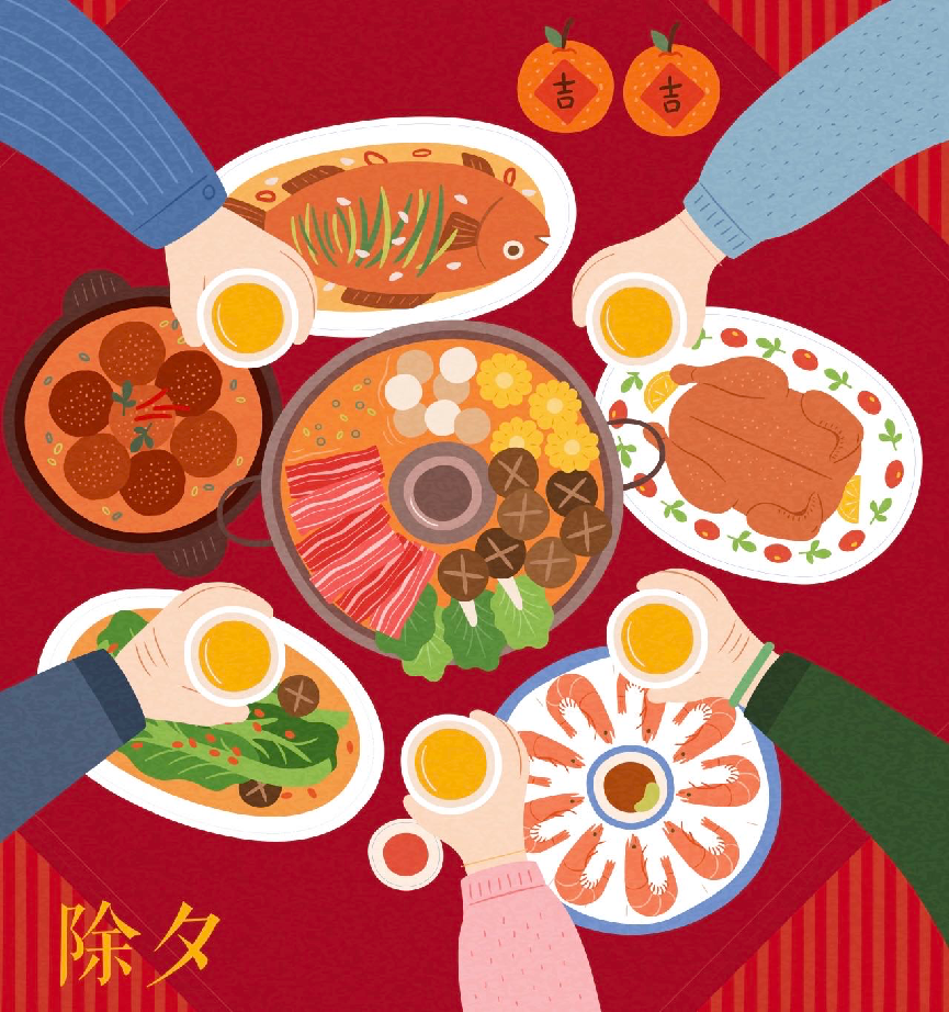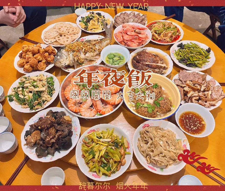 “年夜饭”是中国人一年之中最丰盛的一顿饭,承载着浓浓的年味和对新一年的美好祝愿。