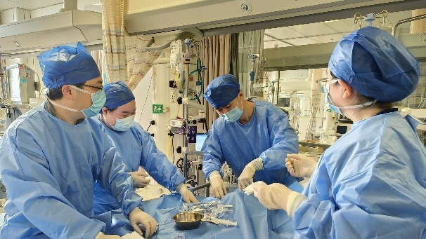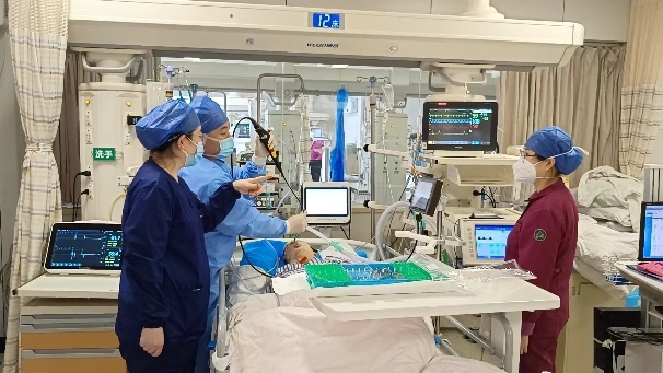 重症医学科紧急启动多学科专家讨论(MDT),包括ICU、妇产科、心血管内科、呼吸内科、泌尿内科、心外科、内分泌科、超声科等,举全院力量参与救治优化诊疗方案。杜滨锋、李洋、胡园园、张文超主治医师积极开展脑组织氧监测、床旁纤支镜及EIT监测指导的呼吸机精细化管理,ECMO支持下外出CT肺血管强化,排除肺动脉栓塞。ECMO支持治疗6天病情趋于稳定,大年二十八与重症医学科主任王昊、韩辉主治医师商议,由VAV模式改VA模式,大年二十九血管外科刘洋主治医师床旁顺利实施ECMO撤离及动脉血管修复手术。在护士长张蔚团队的精心照护下,患者于大年初二撤离呼吸机,续贯经鼻高流量湿化氧疗。经过20天精心救治,现患者CT及超声检查提示肺部炎症及水肿明显吸收、子宫及下肢血管恢复良好,新生儿复查发育正常,母女平安,阖家团圆,顺利出院。