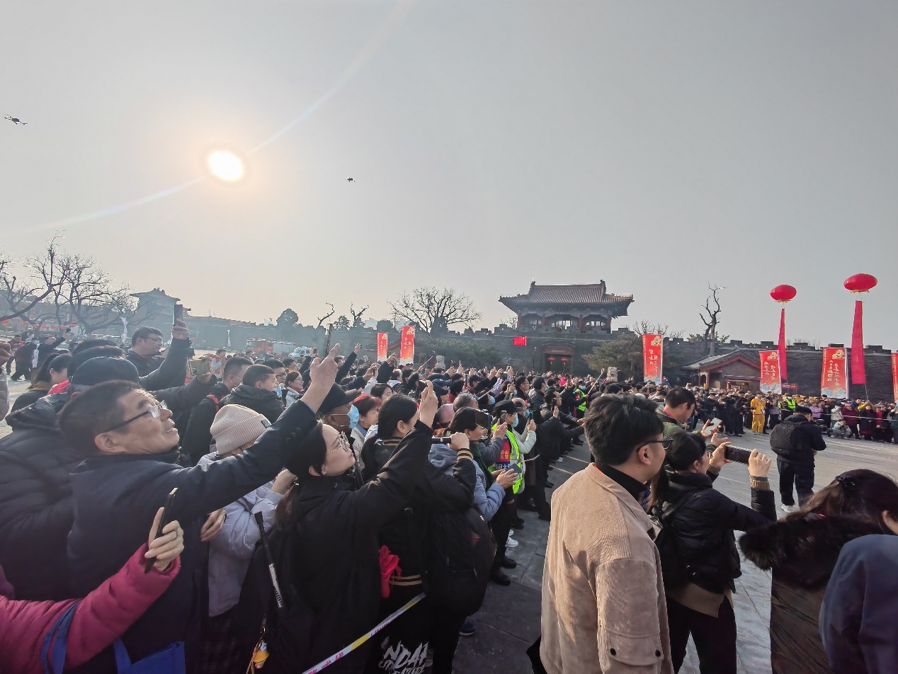 活动现场锣鼓喧天、鼓乐齐鸣,舞龙队伍气势高昂。启动仪式上,来自全国各省、自治区、直辖市以及香港、澳门地区的34名游客代表登上启动仪式舞台,共同合影留念,见证泰山岱庙、红门、天外村、中天门、大观峰、太平顶6个点位连线直播同步舞龙的壮观景象。